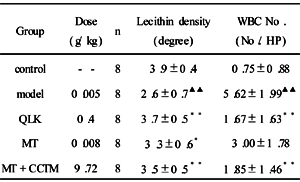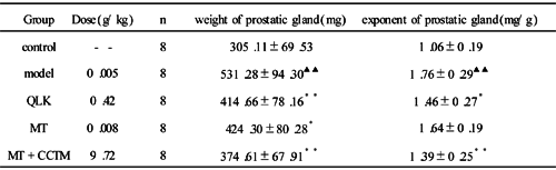 Tab.2.Effects of MT+CCTM on abacterial prostatitis induced by carrageenin in rats (x±s)