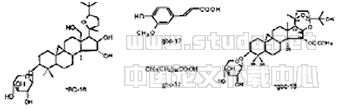 另一个结构上较为新颖的化合物,铁破锣皂甙K(gbc-18)在小鼠体内试验可明显抑制由 ConA诱导的T细胞增殖,具有免疫抑制作用,是一种免疫抑制剂;另外铁破锣皂甙K还有抑制微血管生成方面的活性(20μg/ml);化学结构上看,此化合物含有20,24;16,24双环氧的缩酮结构,其作用机理值得深入研究。