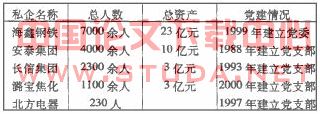 1.规模较大的私企,党员人数较多,一般采取单独建立党的组织。我们重点考察的五家大型私营企业均为单独建立党的组织,具体情况见下表。