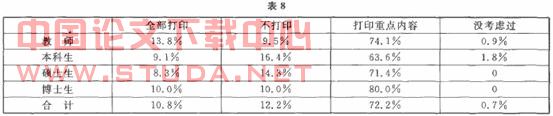 有超过8O的读者会将电子期刊全部或一部分打印出来阅读。可以看出纸制印刷品与电子读物相比,在阅读方面有很大的优势。