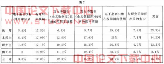 3.7读者使用电子期刊时遇到的最大问题(见表7)
