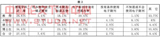 3.2读者到图书馆查阅纸本期刊的原因(见表2)