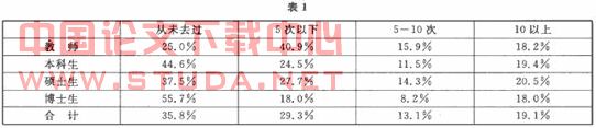 3.1 2006年读者到图书馆查阅纸本期刊的情况(见表1)