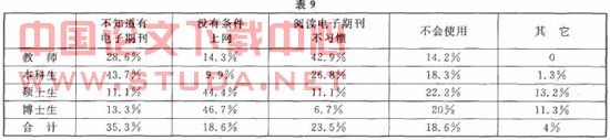 3.9读者不使用电子期刊的主要原因(见表9)