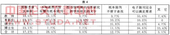 3.4读者不来图书馆查阅纸本期刊的原因(见表4)