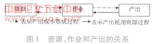 传统的成本计算方法认为,产出耗费资源,将资源直接分配给产出便形成成本对象的成本。这种观点忽略了作业在资源转化为产出并形成成本过程中的作用。作业成本法可以简单地表述为:产出耗费作业,作业耗费资源,从而导致成本发生。图1反映了资源、作业和产出(产品或服务)的关系:
