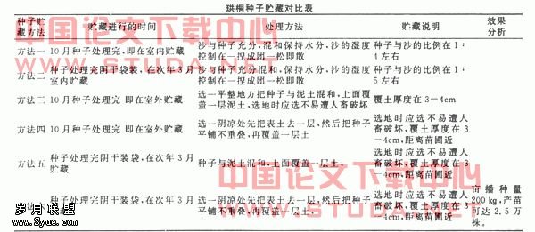 从贮藏方法产生的效果分析,贮藏的关键是打破休眠、促进后熟、腐烂骨突、种仁充分吸水。过去认为种子采后即要保湿的说法值得商榷。