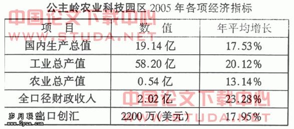 (1)总体实力与投资规模处于增长状态。园区经济实力表现在多方面并可具体以各种经济指标进行衡量。由下表可看出,公主岭农业科技园区总体经济实力与各项指标均处于增长状态,且速度较快。