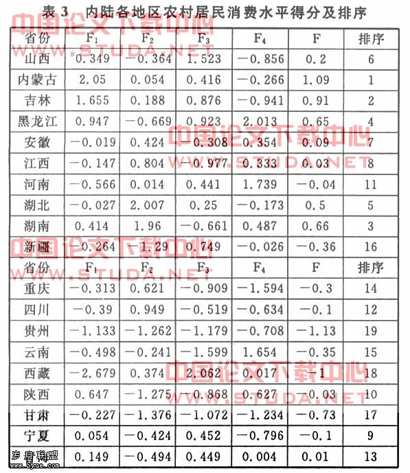 本文采用因子分析法分析各内陆省份农村居民消费状况,通过SPSS11.5处理数据。