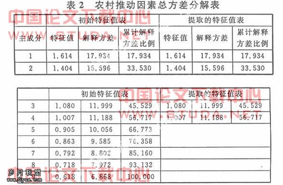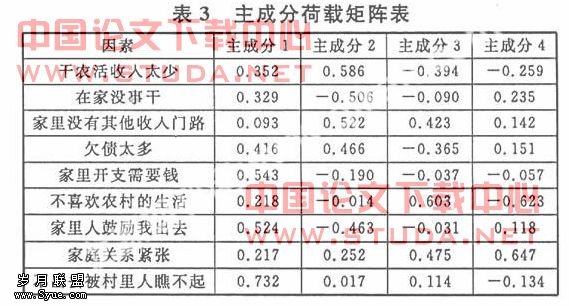 关于农民工进城的农村推动力选项分布比较分散,我们可以对以上9个推动因素采用主成分分析法,提取几个主要的变量(变量都标准化)来做更进一步的解释。