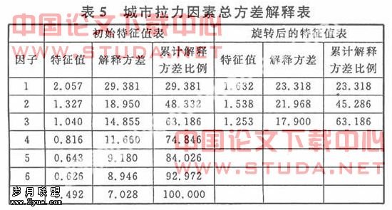 为了进一步分析农民进城的城市社会制度的拉力因素,我们对这7个具有较大相关性的变量做因子分析。
