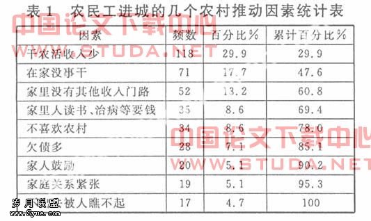 1 农民工进城的农村社会制度推力因素分析