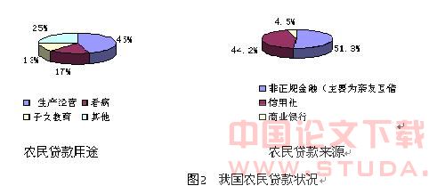 [3]。 经过近几年政府对农村金融改革的重视与支持,特别是农村信用社经过国家注资后,农村金融需求较之从前有了很大程度上的满足。但是根据清华大学经济管院2006年12月发布的《中国农村金融发展调查报告》和从农民角度反向推测,农村金融供给依然匮乏。从图2中可以看出,非正规金融在农村借贷市场上依然占主导地位。