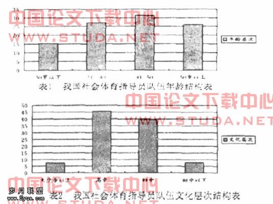 根据国内外关于社会体育指导员的一些文献资料表明,我国社会体育指导起步较晚,至从1994年6月10日颁布了《社会体育指导员技术等级制度》以来,社会体育指导员在数量上迅速增多,他们遍布全国各地。根据《中国群众体育指导员现状调查》表明,随着我国社会体育导员数量的增加,参加体育锻炼的人口比例有明显增加趋势。到目前为止,根据我国人口数量和参与体育人口的比例来看,按照《全民健身计划纲要》第二期工程的要求,到2010年,我国将会有一支60-65万人的社会体育指导员队伍,基本上接近社会体育指导员与总人口千分之五的比例。这样才能有助于促进我国全民健身运动的开展。然而,目前我国所具有的社会指导员数量与之距有一定的差额,不仅如此,在这些社会体育指导员中,总体数量缺乏,各级别之间的数量比例不协调;年龄结构不合理,年龄普遍偏大,表1显示,我国社会体育指导员的年龄结构不甚合理,41-50岁的占31.43%,31-40岁的占27.18%,50岁以上的占26.1%,其中9.23%是61岁以上的,30岁以下的仅占15.27%。从总体来看,虽然我国社会体育指导员年龄偏大,但他们从事体育工作的年限并不长,其中5年以内的占据29.38%,10年以上的占32.30%;可以看出,我国社会体育指导员年龄结构极不合理,需要加大力度进行优化。