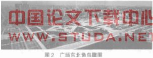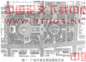 从平面图中可以看到,人民广场本身作为城市中的一个区域,其四周的绿化起到软化边缘的作用,使得广场与周围的区域之间存在一个富于柔性的过度,形成空间上交融和渗透的和缓的过度区。