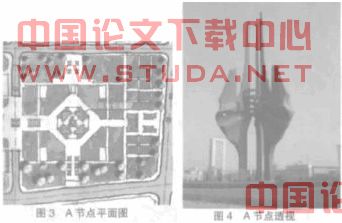 该节点平面如图所示,其本身也可看为是一个大区域中的小区域。由于其所含元素的特异性使得该区域成为整个广场大空间范围内的典型小空间(图3、4)。①领域性。美国人文主义心理学家玛斯洛在《人类动机理论》一书中提出了“需要等级”理论,他认为人类有5种主要需求,由低到高依次排成一个阶层。这5种需求是:生理需求、安全需求、社交需求、自尊需求和自我实现需求。其中自尊需求指的是空间的私密性和归属感。相对于整个广场而言,本区域属于半公共空间。②使用活动分析。人类生来就有“凑热闹”的本性, 喜欢观察别人也希望别人注意自己。使用活动或活动支持和允许这些活动发生的形体环境条件满足了人们的这一要求,他们是相互影响和补充的两个方面。