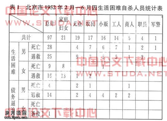 资料来源:《1952年2月—6月份因生活困难自杀统计表》,北京市档案馆,196-2-215。