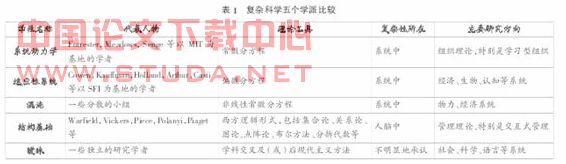 关于复杂利学的研究一般认为是在20世纪80年代中期开始的。从当前的研究来看,英美等国做了比较多的工作,我国也做了一些工作。在美国复杂科学的研究已形成了五个学派,如下表1所示。