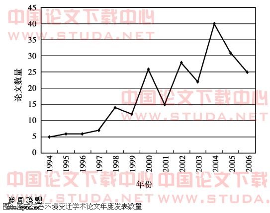 下面,本文作者通过中国学术期刊网(WWW.CNKI.NET)1994年至今(部分刊物回溯至创刊),中国期刊全文数据库共17 693 112篇,以及1999年至2006年中国优秀博硕士学位全文数据库共309 938篇硕士、博士学位论文的文献综合分析,来简要概括我国有关生态环境变迁研究的相关进展。