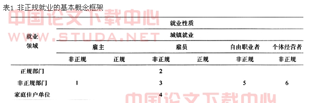根据国际劳工组织的标准,我国的非正规就业的基本框架如表1所示: