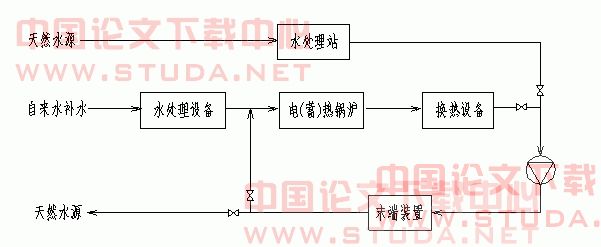 天然水源+水处理设备+水泵+末端装置, 通过水管路系统连接起来。