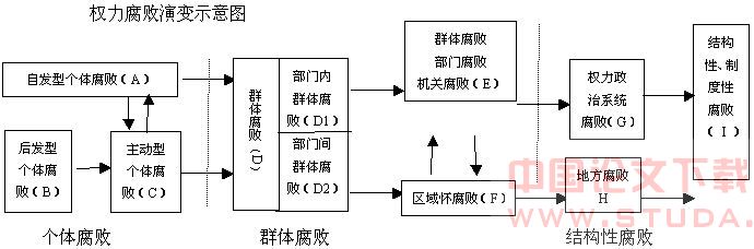 [提 要]本文在结合案例、理论研究的基础上,把最初发生的个体权力腐败分为自发型权力腐败、后发型权力腐败两种类型。以此为出发点,人心理的、的、的、社会的、文化的、的角度描述了两种类型个体腐败的形成过程及个体腐败到群体腐败、结构性腐败的演变过程,最后绘制出权力腐败演变示意图。