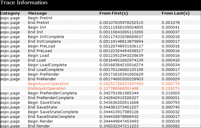 对 Begin 的调用标记该页的“异步点”。图 3 中的跟踪准确显示异步点发生在何处。如果调用,则必须在异步点之前调用 AddOnPreRenderCompleteAsync — 即,不晚于该页的 PreRender 事件。