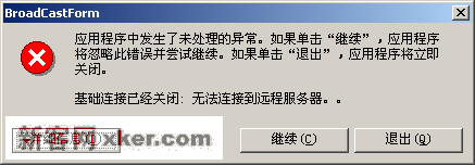 在发送事件消息的时候,事件的订阅者会触发事件,然后响应该事件。然而当事件的订阅者发生错误的时候呢?例如,发送事件消息的时候,才发现根本没有事件订阅者;或者事件的订阅者出现故障,如断电、或异常关机。此时,发送事件一方会因为找不到正确的事件订阅者,而发生异常。以我的程序为例。当我们分别打开服务端和客户端程序的时候,此时广播信息正常。然而,当我们关闭客户端后,由于该客户端没有取消订阅,此时异常发生,提示信息如图: