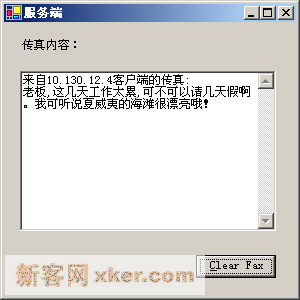 嘿嘿,做梦都想放假啊。好的,传真写好了,发送吧!再看看服务端,great,老板已经收到我的请假条传真了!
