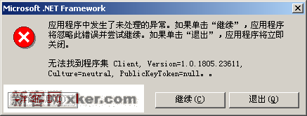 “人之不如意事,十常居八九。”不用沮丧,让我们分析原因。首先看看错误信息,它报告我们没有找到Client程序集。然而事实上,Client程序集当然是有的。那么再来调试一下,是哪一步出现的问题呢?设置好断点,进行逐语句跟踪。前面注册通道一切正常,当运行到watch.BroadCastEvent += new BroadCastEventHandler(BroadCastingMessage)语句时,错误出现了!