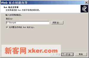 ??7.如下左图,指定Web站点主目录,对于必须进行用户身份认证的专用站点,可以取消选择【允许匿名访问此Web站点】复选框。单击【下一步】。