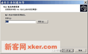 ??4.如左图,单击【浏览】指定虚拟目录所对应的实际文件夹,单击【下一步】。这里的实际文件夹才是真正包含网站内容文件的位置,虽然它们看上去处于主目录之下,但实际上我们可以任意指定它的位置,本地或远程均可。