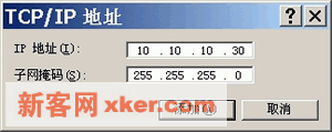 ??7.如下图,在【TCP/IP地址】对话框中添加绑定到这快网卡的其他IP地址及其对应的子网掩码。