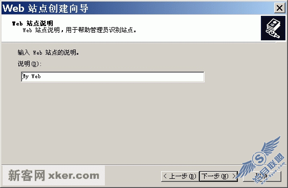 ??5.如左下图输入web站点说明,单击【下一步】。注意这里的站点说明并不等于站点域名,而是用于在IIS服务器端区分站点的名称。(图转下页)