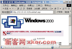 ??在IIS控制树中右击新建站点节点,在弹出菜单上单击【浏览】,如果出现如左图所示的站点主页窗口,说明站点设置正确无误。然后还需要在网络中的其他计算机上进行浏览检验,以验证TCP/IP设置及网络设置的正确性。