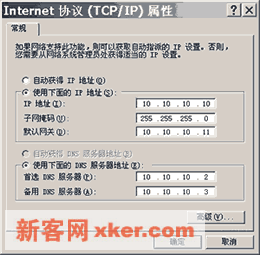 ??4.如右图,在Internet协议属性对话框中指定"首选DNS服务器"和"备用DNS服务器"的IP地址。