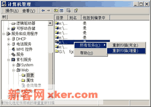 ??一般情况下,索引服务自动进行扫描工作,无需用户参与。但是,在某些情况下,有必要手动扫描。例如,添加新的筛选器之后,必须进行手动扫描才能使其生效。手动扫描的方法如下:??1.在计算机管理器中展开索引服务节点。