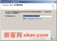 ??5.如右下图所示,指定接收新闻组的电子邮件地址,这里的e_mail地址必须有效,单击【下一步】。