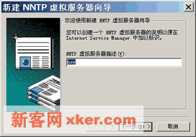 ??2.如右上图所示,在新建NNTP虚拟服务器向导中输如虚拟服务器描述信息,该信息用于在IIS内部标识NNTP虚拟服务器,而非服务器域名,单击【下一步】。