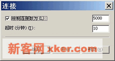 ??允许其他服务器从此服务器接收新文章:允许NNTP新闻传递服务将当前服务器文章转贴到其他新闻服务器上??允许控制消息:自动处理控制消息并纪录在系统日志中。在NNTP虚拟服务器属性表单的【常规】选项卡中亦可对客户机连接进行限制。单击【连接】打开如右图所示的连接属性对话框,从中可以对同时连接到站点上的用户数量和连接超时进行限制以优化服务器性能。选择【限制连接数为】复选框并指定最大阿同时连接数,在【超时】栏中指定因用户发呆而断开连接的时限。单击【确定】返回。