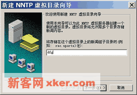 ??1.打开IIS管理控制界面,展开管理控制树中的NNTP虚拟服务器节点,右击【虚拟目录】,选择【新建】打开新建NNTP虚拟目录向导。