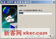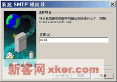 ??3.如右下图所示,在【选择域名】对话框的【名称】栏中,指定用户由此域接收/发送的电子邮件所使用的域名,即用户电子邮件地址中"@"字符后面的域名部分。单击【完成】结束配置。此时,新建的域出现在SMTP虚拟服务器地域列表中。