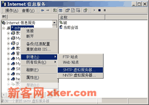 ??1.在IIS管理控制树中右击计算机节点,如右上图所示,在弹出菜单中指向【新建】单击【SMTP虚拟服务器】。