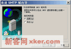 ??2.如右上图所示,在【新建SMTP域向导】对话框中,制定新建域类型,别名域是本地默认域的一个副本域,它使用与本地默认域相同的系统文件夹(Drop等目录);远程域是为了方便对远程站点进行管理而设置的域。单击【下一步】继续。