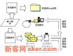 件夹直接移动到Drop 文件夹中,一旦邮件存放到Drop目录,SMTP的邮件传送循环就算完成了。??● 远程邮件传送:对于收件人账号位于远程邮件服务器商的邮件,SMTP服务将进行如下操作: