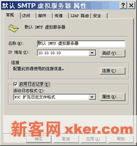 ??5.在【常规】选项卡中选择【起用日志记录】复选框,指定活动日志格式,并单击【属性】设定日志的记录时间及方式等参数。有关日志记录方面的问题,我们在WWW以及FTP服务的章节中已经花了不少笔墨进行介绍,故在此不再详述。