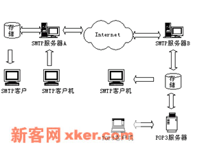 为每一用户指定一个单独的文件夹,这是纯粹的SMTP服务器所不能做到的。??上述内容并非大多数电子邮件服务提供商所实际使用的方式,作为补充,我们再次简要介绍一下公用邮件服务提供商通常(例如freemail.263.net、hotmail.com)使用的工作方式。它们通常同时使用两个邮件服务器地址,如freemail.263.net:它的POP3服务器为263.net ,SMTP服务器为smtp.263.net。用户通过客户端邮件软件(需要配置SMTP及POP3服务器地址)连接到263免费邮件服务器之后,先要通过账号身份验证,然后进行邮件收发。这里涉及两个过程:SMTP和POP3。用户使用SMTP,通过TCP端口25发送邮件;而POP3检索用户的新邮件并使用TCP端口110将新邮件发送到用户本地。由此可见,完善的邮件服务需要SMTP和POP3的共同作用。但是鉴于IIS并不支持POP3,所以我们将不介绍很多POP3的内容。说到这里,读者应该清楚的了解IIS在邮件服务方面的限制,不过在某些场合,SMTP还是有它存在的价值。SMTP工作原理