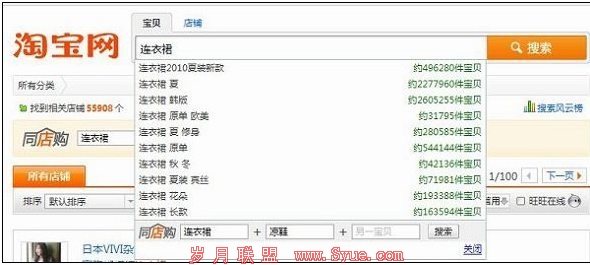 当你在搜索框输入宝贝名的时候,请往下瞧,它就在这!