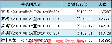 详细数据可参考"爱觅团"网站上的爱觅团购周报。糯米团上线几乎没有宣传,人人网也没有广告横幅,对于昨天糯米这数据或许有人表示怀疑,为什么人数能在一天内爆炸?