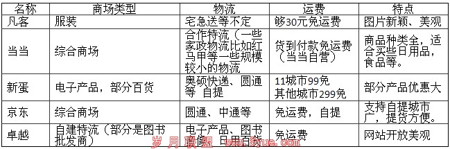 以下我们从商场类型、物流、运费、特点方面来看看: